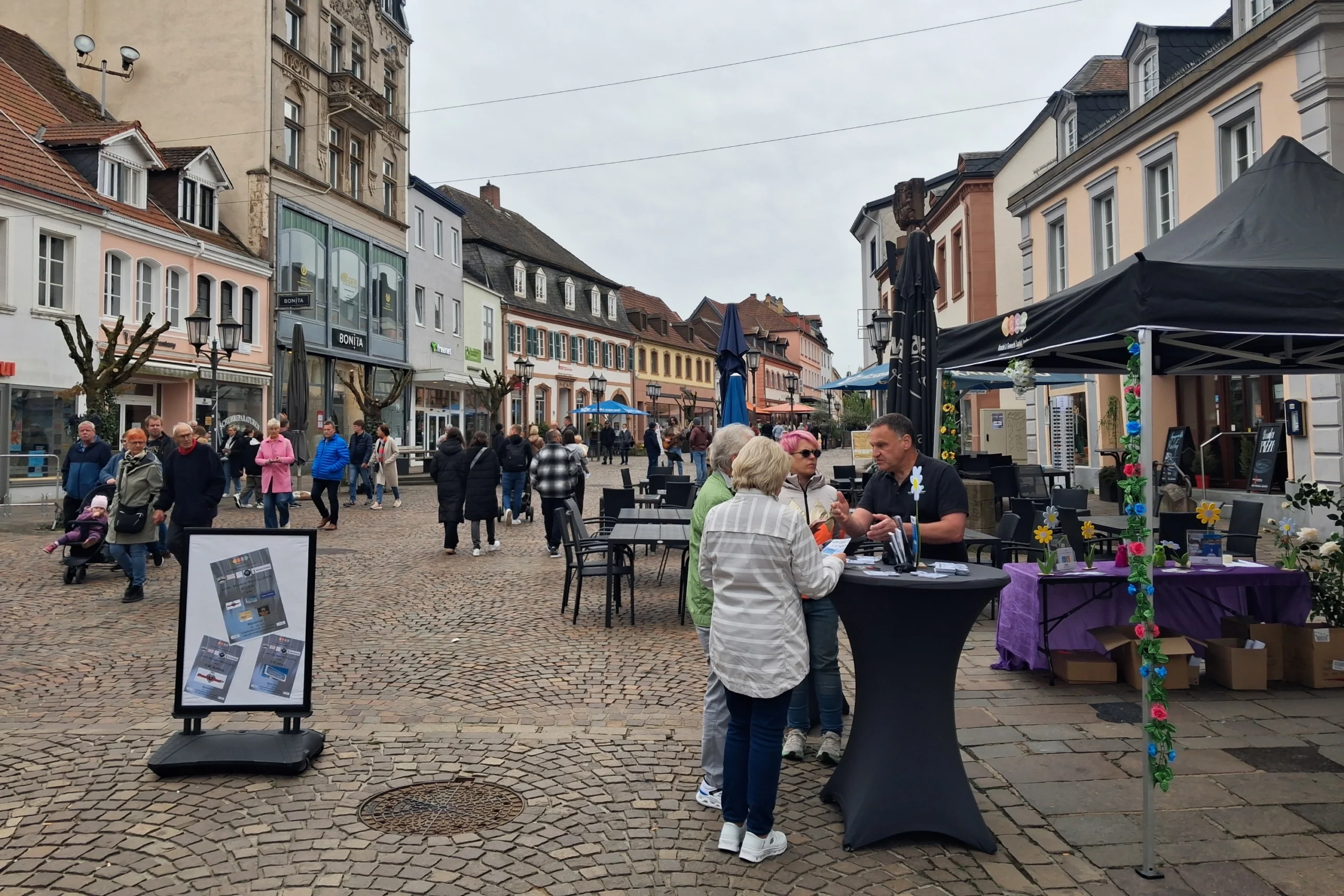Mit einem rundum gelungenen Nachmittag ist am 12. April 2026 der erste verkaufsoffene Sonntag des Jahres in St. Ingbert erfolgreich gestartet. Der Verein Handel & Gewerbe St. Ingbert (HGSI) war zum Auftakt mit Pavillon und engagiertem Orga-Team zentral in der Innenstadt direkt vor der Engelbertskirche vertreten und stand den Besucherinnen und Besuchern als Ansprechpartner zur Verfügung.